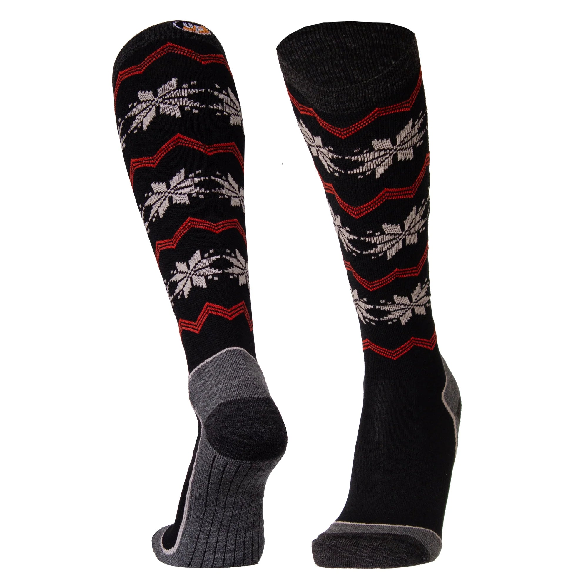 Die UphillSport Kota Socken sind knielange Merinowoll-Socken, die mit ihrem schönen Schneeflockenmuster perfekt für winterliche Outdoor-Aktivitäten sind. Ihre dünne Schaftstruktur mit eingearbeitetem Elasthan verteilt den Druck gleichmäßig, sodass sie auch ideal für enge Skischuhe geeignet sind.